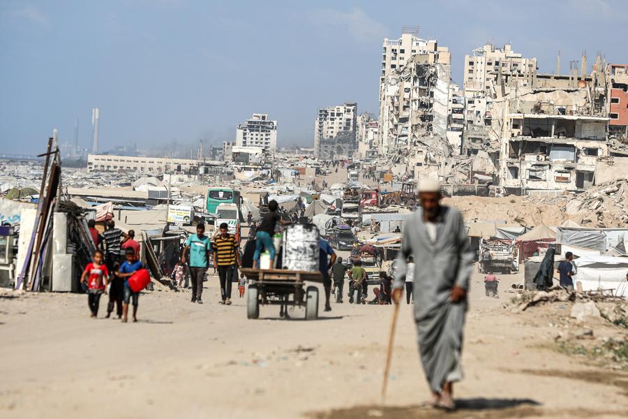 غزة 14 سبتمبر 2025 (شينخوا) بعد محاولات مضنية استسلم الفلسطيني محمد أبو رزق لضغوطات أبنائه بالخروج من مدينة غزة إلى مناطق وسط وجنوب القطاع، مع اشتداد الضربات الإسرائيلية التي تشهدها المدينة.