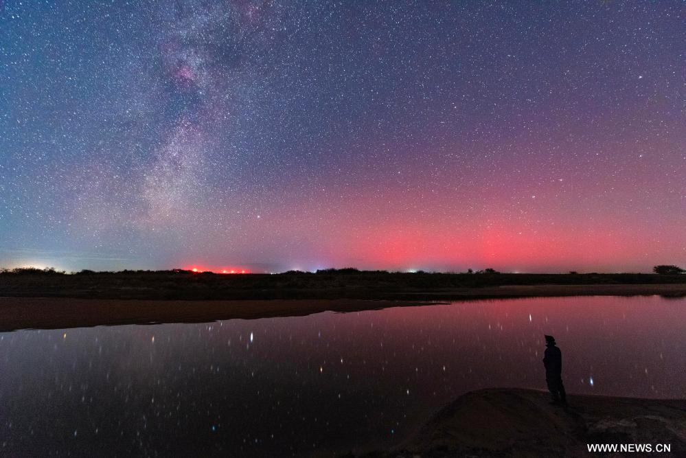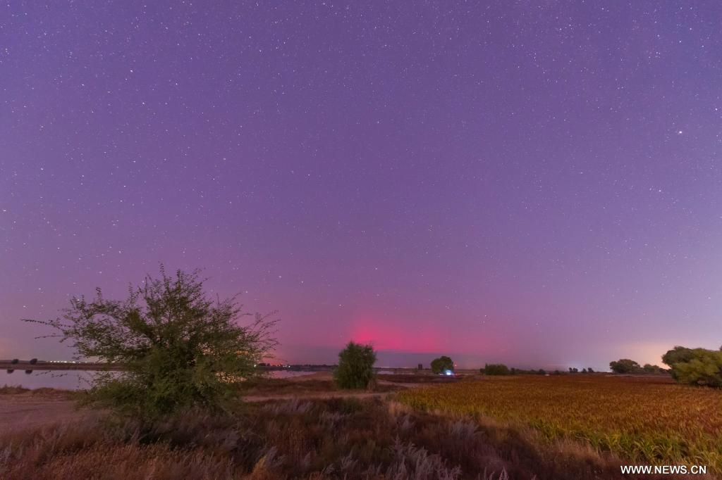 هاربين أول أكتوبر 2025 (شينخوا) في الصورة الملتقطة يوم 30 سبتمبر 2025، منظر بديع للشفق القطبي في مدينة تشيتشيهار بمقاطعة هيلونغجيانغ شمال شرقي الصين.