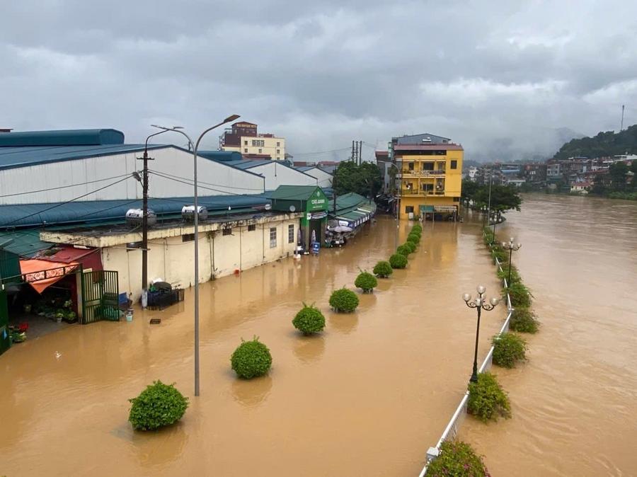 شارع للمشاة غمرته مياه الفيضانات في مقاطعة كاو بانغ بفيتنام، 30 سبتمبر 2025.