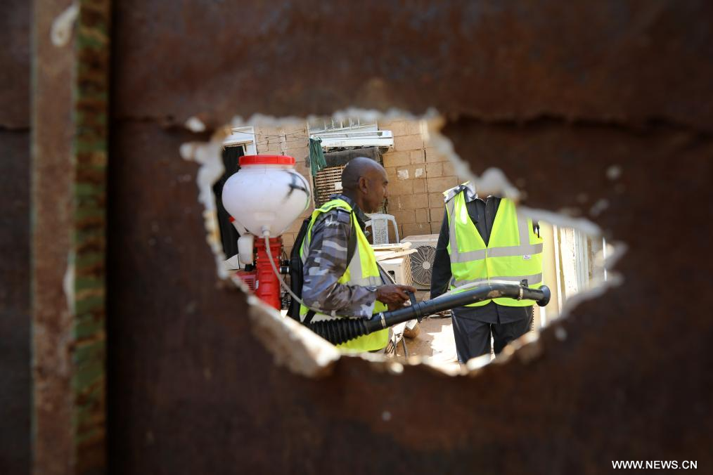 أم درمان أول أكتوبر 2025 (شينخوا) في الصورة الملتقطة يوم 30 سبتمبر 2025، موظف بقوات الدفاع المدني السودانية يرش المبيد الحشري بحي الواحة في مدينة أم درمان شمالي العاصمة السودانية الخرطوم.