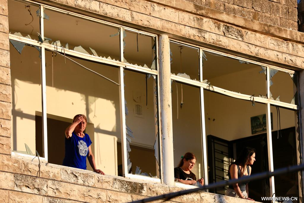المصيلح، لبنان، 11 أكتوبر 2025 (شينخوا) في الصورة الملتقطة يوم 11 أكتوبر 2025، مواطنات لبنانيات داخل مبنى تضرر إثر غارات جوية إسرائيلية على منطقة المصيلح جنوبي لبنان.