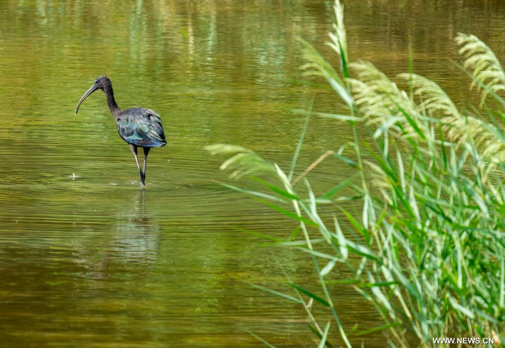 فوتشو 12 أكتوبر 2025 (شينخوا) في الصورة الملتقطة يوم 4 أكتوبر 2025، طائر أبو منجل يبحث عن الطعام في الأراضي الرطبة في فوتشو بمقاطعة فوجيان في جنوب شرقي الصين.