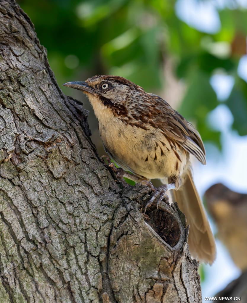 فوتشو 12 أكتوبر 2025 (شينخوا) في الصورة الملتقطة يوم 9 سبتمبر 2025، طائر باباكس صيني يبحث عن الطعام على فرع شجرة في شيامن بمقاطعة فوجيان في جنوب شرقي الصين.