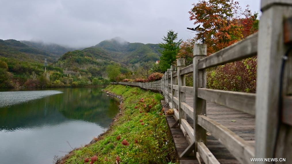 داندونغ 12 أكتوبر 2025 (شينخوا) في الصورة الملتقطة يوم 11 أكتوبر 2025، منظر خلاب مع حلول موسم الخريف في منطقة تيانتشياوقو السياحية بمدينة داندونغ في مقاطعة لياونينغ بشمال شرقي الصين.