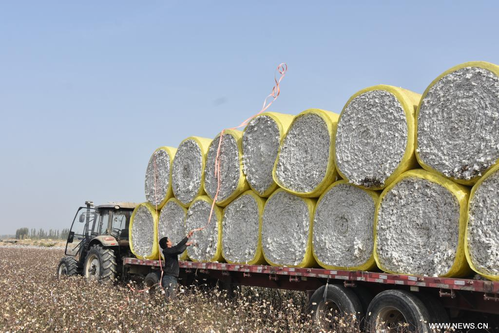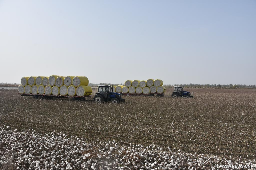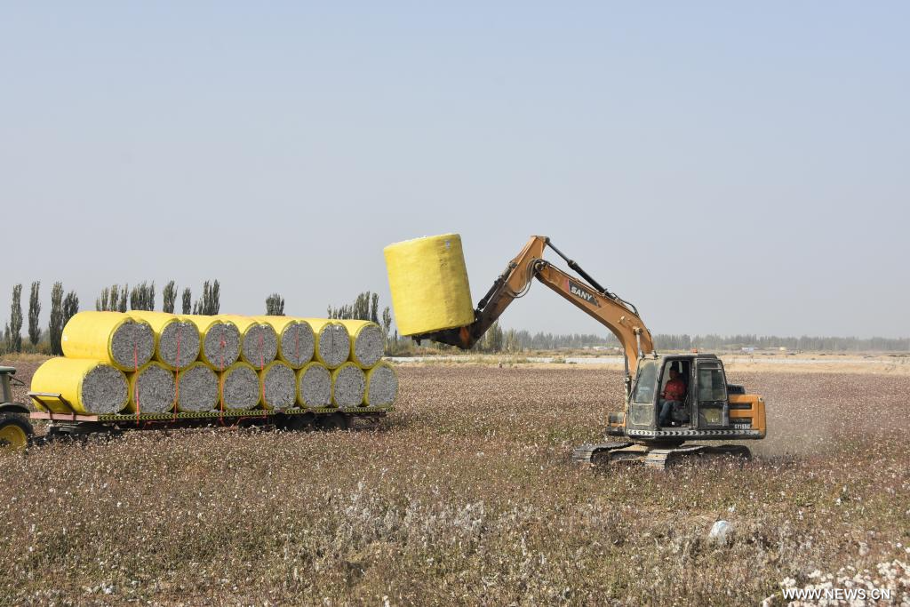 حصاد القطن في منطقة شينجيانغ الويغورية بشمال غربي الصين