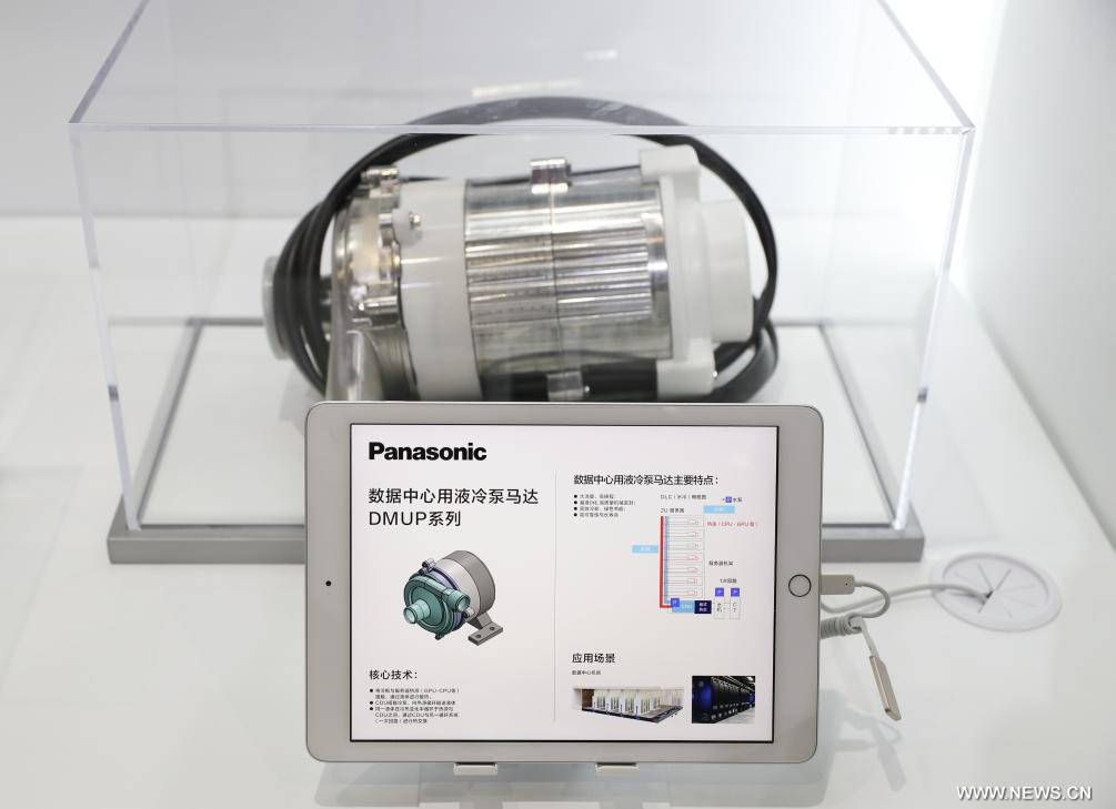 شانغهاي 7 نوفمبر 2025 (شينخوا) في الصورة الملتقطة يوم 6 نوفمبر 2025، محرك مضخة تبريد سائل لمراكز البيانات لشركة "باناسونيك" في ظهوره العالمي الأول في منطقة عرض السلع الاستهلاكية خلال الدورة الثامنة من معرض الصين الدولي للاستيراد في بلدية شانغهاي بشرقي الصين. وعرض العديد من العارضين أحدث منتجاتهم خلال المعرض.