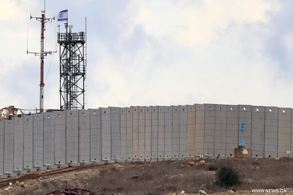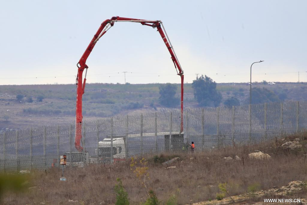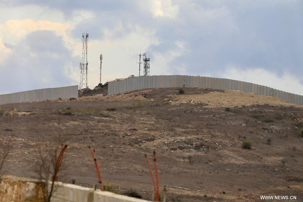 يارون 17 نوفمبر 2025 (شينخوا) في الصورة الملتقطة يوم 16 نوفمبر 2025، قطاع من الجدار الذي تبنيه إسرائيل عند حدود بلدة يارون جنوبي لبنان.