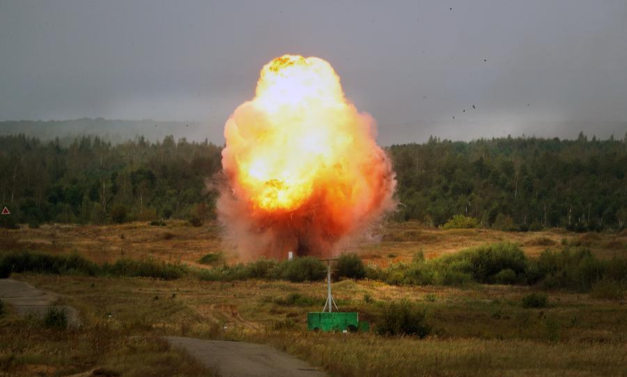 تظهر هذه الصورة الملتقطة في 15 سبتمبر 2025 مشهدا من مناورات "زاباد-2025" العسكرية الاستراتيجية المشتركة بين روسيا وبيلاروس في منطقة مينسك ببيلاروس. (شينخوا)