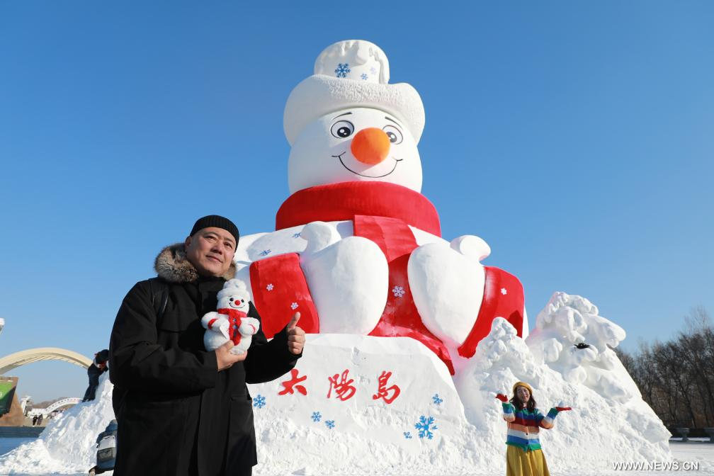 رجل ثلج عملاق في مدينة هاربين بشمال شرقي الصين