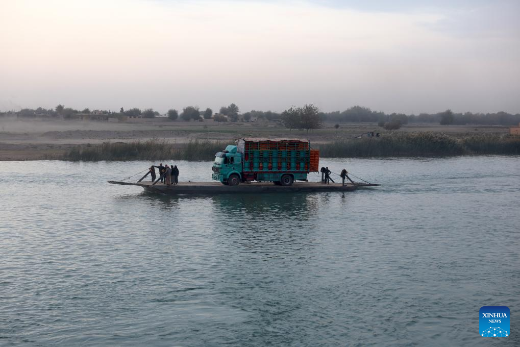 دير الزور، سوريا 16 ديسمبر 2025 (شينخوا) بينما تشقّ عبّارة معدنية ذات قاع مسطح طريقها ببطء عبر نهر الفرات تحت وطأة شاحنة محملة بالكامل، يسحب رجال كابلات فولاذية سميكة بأيديهم، في حين يقف الركاب متوترين على سطحها، يراقبون المياه وهي تقترب بشكل خطير من الحافة.