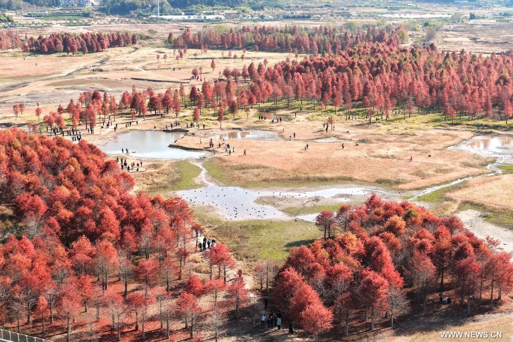 بكين 16 ديسمبر 2025 (شينخوا) في الصورة الملتقطة يوم 15 ديسمبر 2025، منظر شتوي لحديقة للأراضي الربطة في شينغهوا بمقاطعة جيانغسو بشرقي الصين.