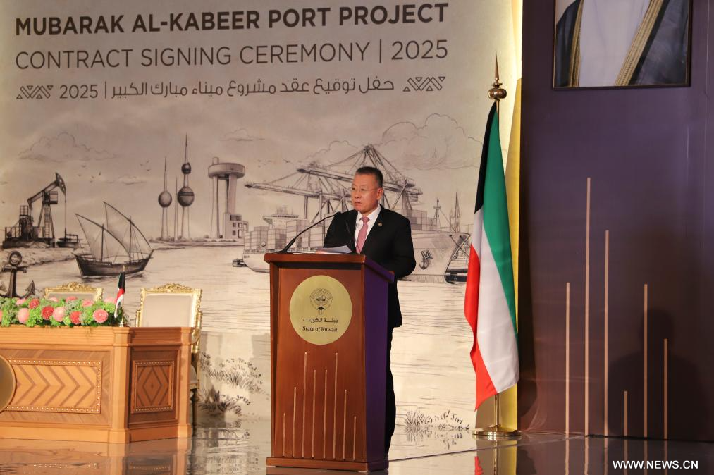 رئيس الوزراء الكويتي يشيد بالعلاقات مع الصين أثناء توقيع عقد بشأن مشروع ميناء مبارك الكبير