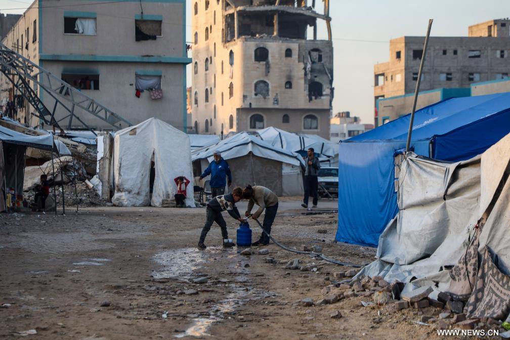 مدينة غزة 23 ديسمبر 2025 (شينخوا) في الصورة الملتقطة يوم 22 ديسمبر 2025، أطفال فلسطينيون نازحون في مخيم مؤقت غربي مدينة غزة.