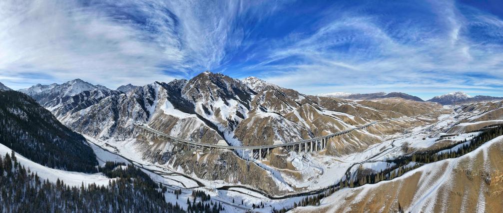 أورومتشي 26 ديسمبر 2025 (شينخوا) في الصورة الملتقطة يوم 20 ديسمبر 2025، منظر لطريق أورومتشي- يويلي السريع الذي يمر عبر جبال تيانشان في منطقة شينجيانغ الويغورية ذاتية الحكم بشمال غربي الصين. وافتتح نفق تيانشان شنغلي الذي يبلغ طوله 22.13 كيلومتر، أطول نفق طريق سريع في العالم، رسميا أمام حركة المرور اليوم الجمعة، ما يتيح طريقا مختصرا جديدا يربط بين الأجزاء الجنوبية والشمالية من منطقة شينجيانغ.