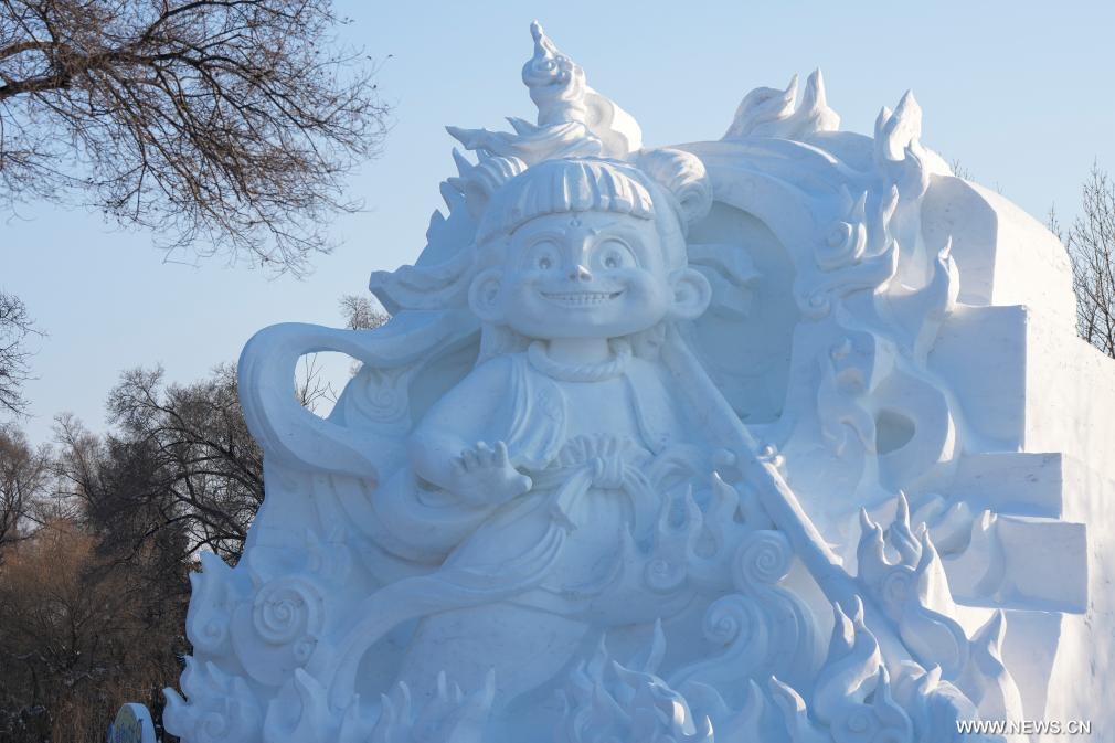 هاربين 27 ديسمبر 2025 (شينخوا) في الصورة الملتقطة يوم 26 ديسمبر 2025، تمثال ثلجي معروض في معرض جزيرة الشمس الدولي الـ38 لفنون النحت على الثلج في مدينة هاربين حاضرة مقاطعة هيلونغجيانغ بشمال شرقي الصين.