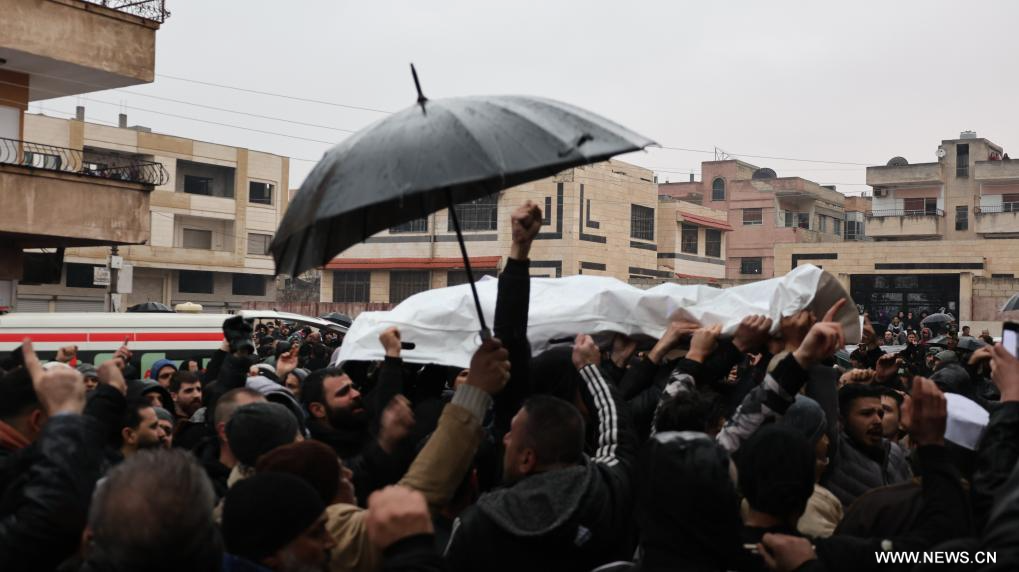 حمص 27 ديسمبر 2025 (شينخوا) شيع عشرات السوريين اليوم (الجمعة) قتلى الانفجار الذي استهدف الجمعة مسجدا للعلويين في مدينة حمص وسط سوريا، في ظل إجراءات أمنية مشددة وأجواء حزينة.