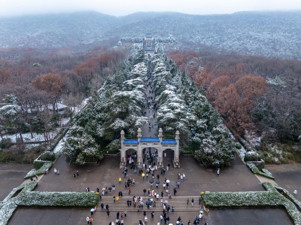 بكين 2 يناير 2026 (شينخوا) في الصورة الملتقطة يوم أول يناير 2026، سياح يزورون جبل تسيجين المغطى بالثلوج في مدينة نانجينغ حاضرة مقاطعة جيانغسو بشرقي الصين.