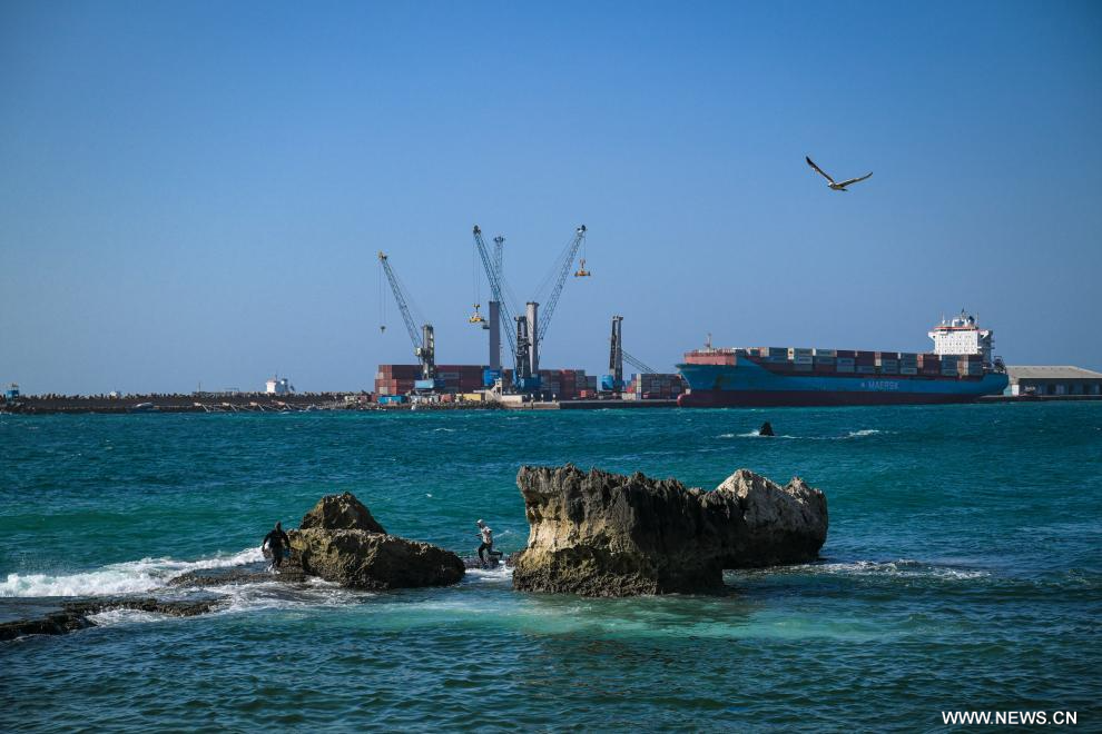 مقديشو 15 يناير 2026 (شينخوا) في الصورة الملتقطة يوم 11 يناير 2026، سفينة شحن راسية في ميناء مقديشو بالعاصمة الصومالية مقديشو.