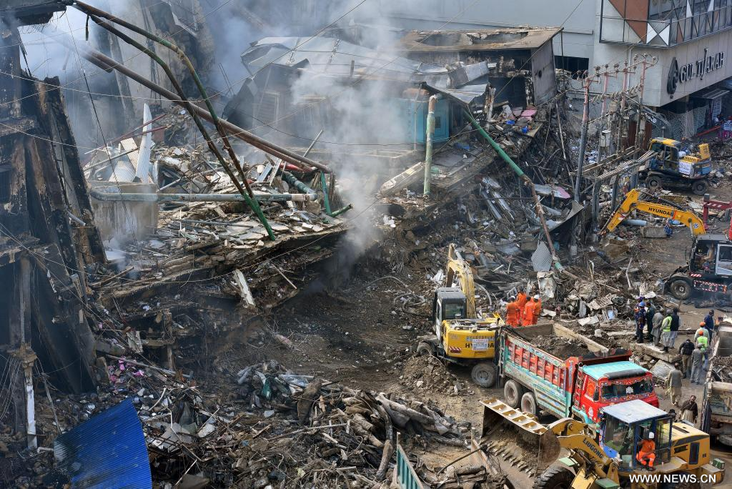 وقال متحدث باسم خدمة الإنقاذ الحكومية 1122 إن عملية بحث وإنقاذ واسعة النطاق مستمرة في مبنى "جول بلازا" الذي تضرر بشدة جراء الحريق. وهناك مخاوف من سقوط المزيد من الضحايا نظرا لعدم استقرار المبنى وانهيار أجزاء كبيرة منه.