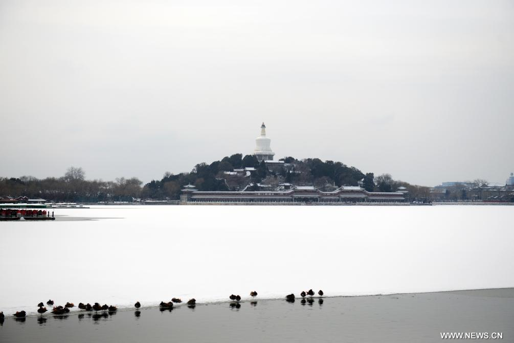 بكين 19 يناير 2026 (شينخوا) في الصورة الملتقطة يوم 18 يناير 2026، منظر لحديقة بيهاي بعد تساقط الثلوج في العاصمة الصينية، بكين.