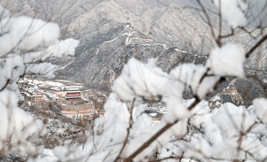 بكين 21 يناير 2026 (شينخوانت) في الصورة الملتقطة يوم 18 يناير 2026، منظر لسور الصين العظيم بعد تساقط الثلوج في بكين، عاصمة الصين.