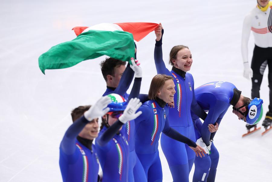 ميلانو 10 فبراير 2026 (شينخوا) أحرزت إيطاليا الميدالية الذهبية في سباق التتابع للتزلج السريع على مضمار قصير للفرق المختلطة ضمن دورة الألعاب الأولمبية الشتوية ميلانو-كورتينا اليوم (الثلاثاء)، حيث أنهى الفريق الإيطالي السباق في زمن قدره دقيقتان و39.019 ثانية.