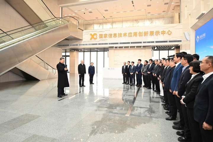 وفي صباح يوم الاثنين، زار شي مجمعا وطنيا لابتكار تكنولوجيا المعلومات في بكين "إي-تاون"، حيث اطلع على معروضات تُبرز إنجازات علمية وتكنولوجية في مجالات مثل الذكاء الاصطناعي والروبوتات، وتحدث مع باحثين ورؤساء شركات تكنولوجية.