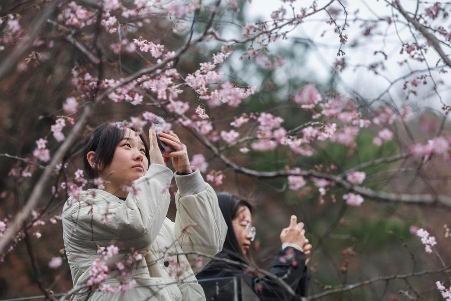 جيانده 26 فبراير 2026 (شينخوا) في الصور الملتقطة يوم 25 فبراير 2026، مناظر لأزهار الكرز البرية في بلدة ساندو بمدينة جيانده في مقاطعة تشجيانغ بشرقي الصين.■