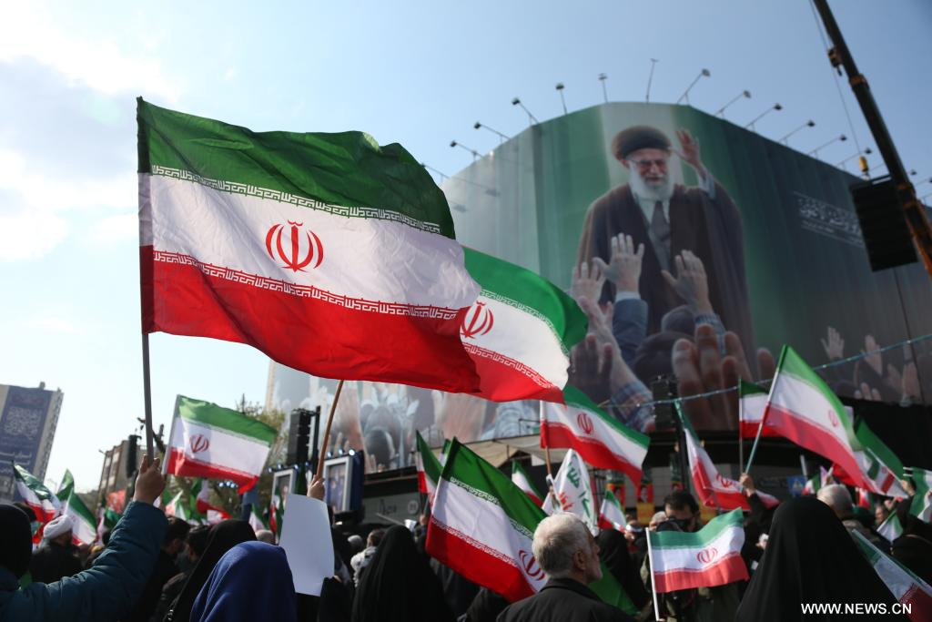 طهران 10 مارس 2026 (شينخوا) في الصورة الملتقطة يوم 9 مارس 2026، إيرانيون يشاركون في تجمعات حاشدة لمبايعة المرشد الأعلى الإيراني الجديد مجتبى خامنئي في ساحة انقلاب بطهران، إيران.