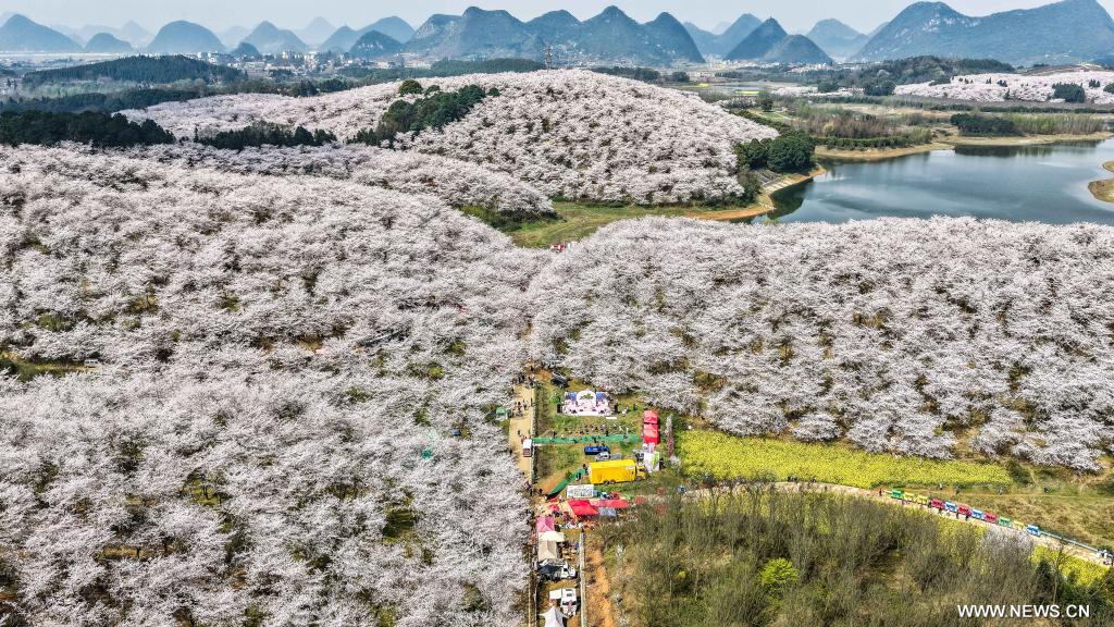 مناظر خلابة لأزهار الكرز في مقاطعة قويتشو بجنوب غربي الصين