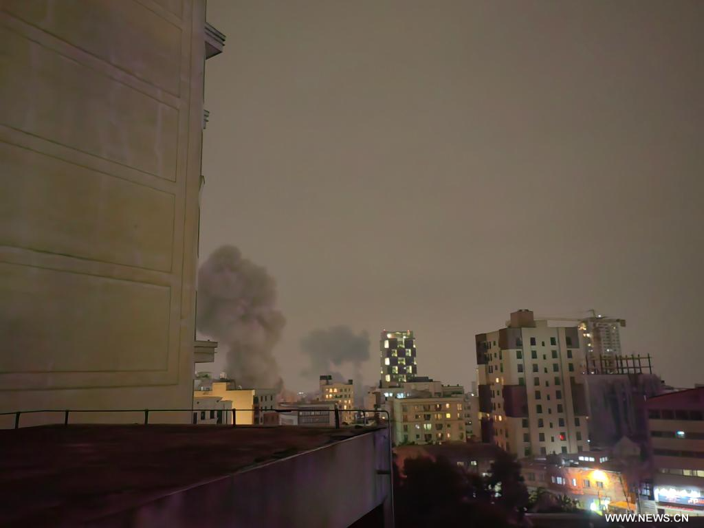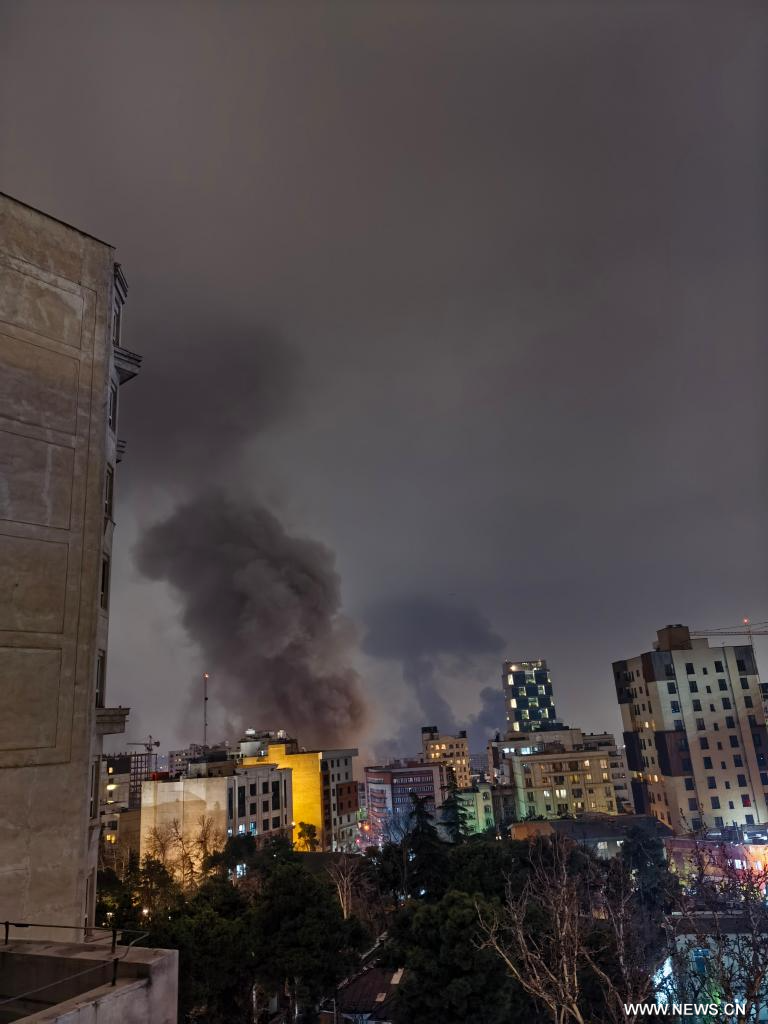 طهران 14 مارس 2026 (شينخوا) في الصورة الملتقطة يوم 13 مارس 2026، أعمدة دخان تتصاعد عقب غارات جوية على العاصمة الإيرانية، طهران. وسُمع دوي عدة انفجارات مساء يوم الجمعة في مناطق مختلفة من طهران.