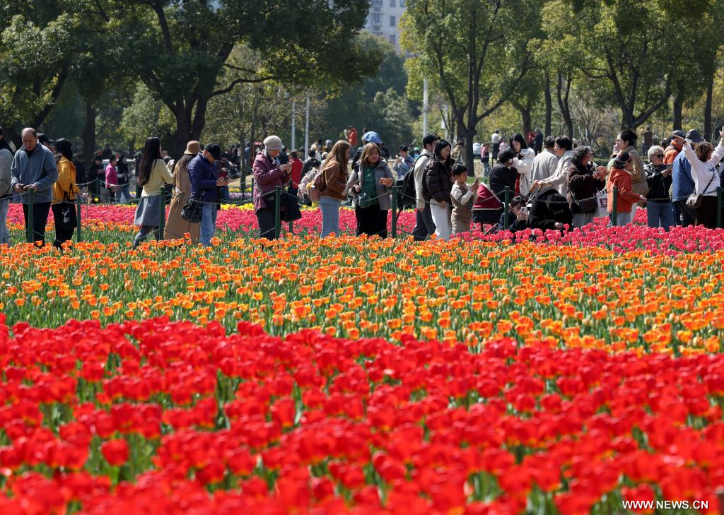 جماهير تستمتع بالأزهار في الحدائق في الصين