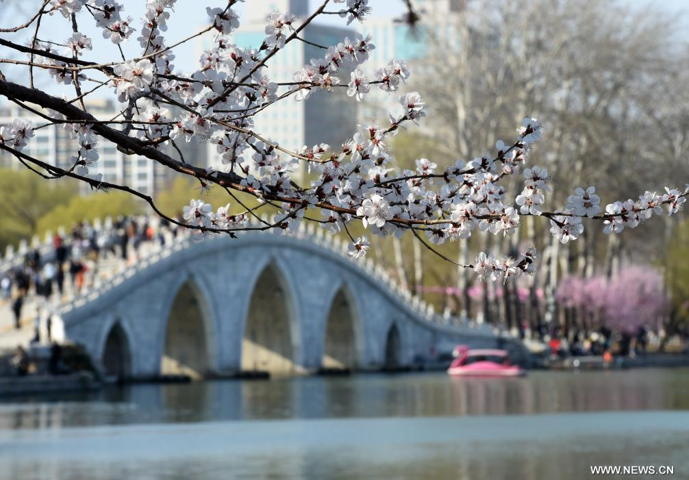 بكين 20 مارس 2026 (شينخوا) في الصورة الملتقطة يوم 19 مارس 2026، منظر ربيعي في حديقة يوييوانتان في بكين، عاصمة الصين.