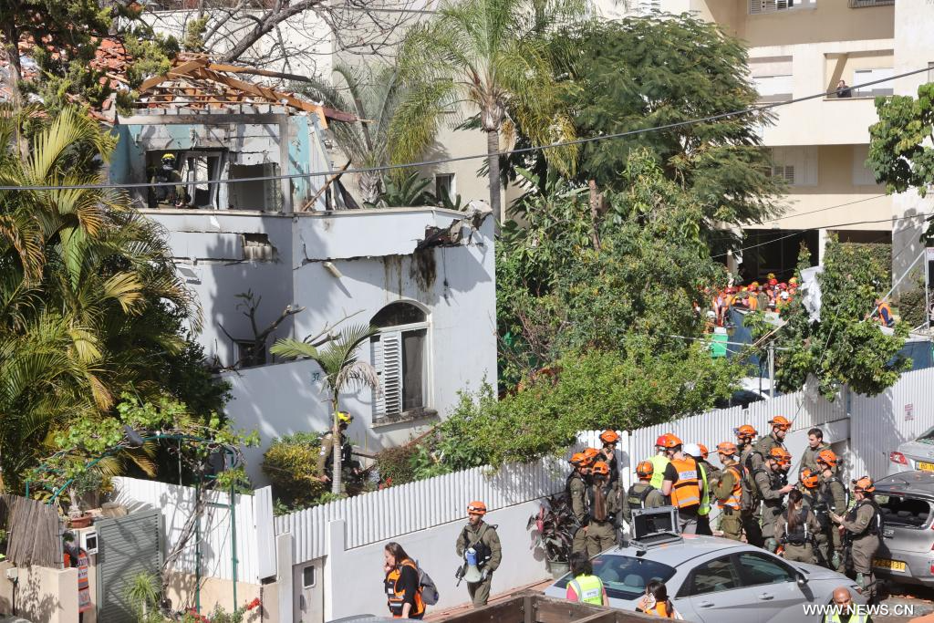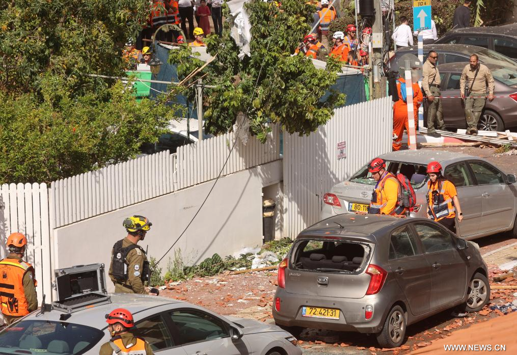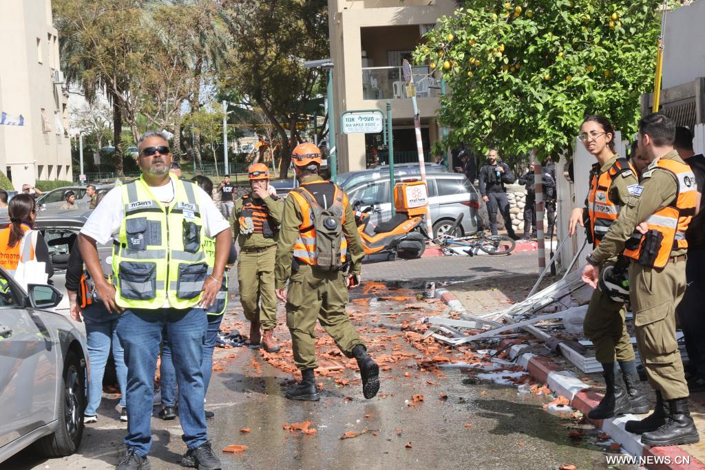 رحوفوت 21 مارس 2026 (شينخوا) في الصورة الملتقطة يوم 20 مارس 2026، فرق الاستجابة للطوارئ تباشر عملها في موقع تضرر جراء هجوم صاروخي إيراني على مدينة رحوفوت وسط إسرائيل.