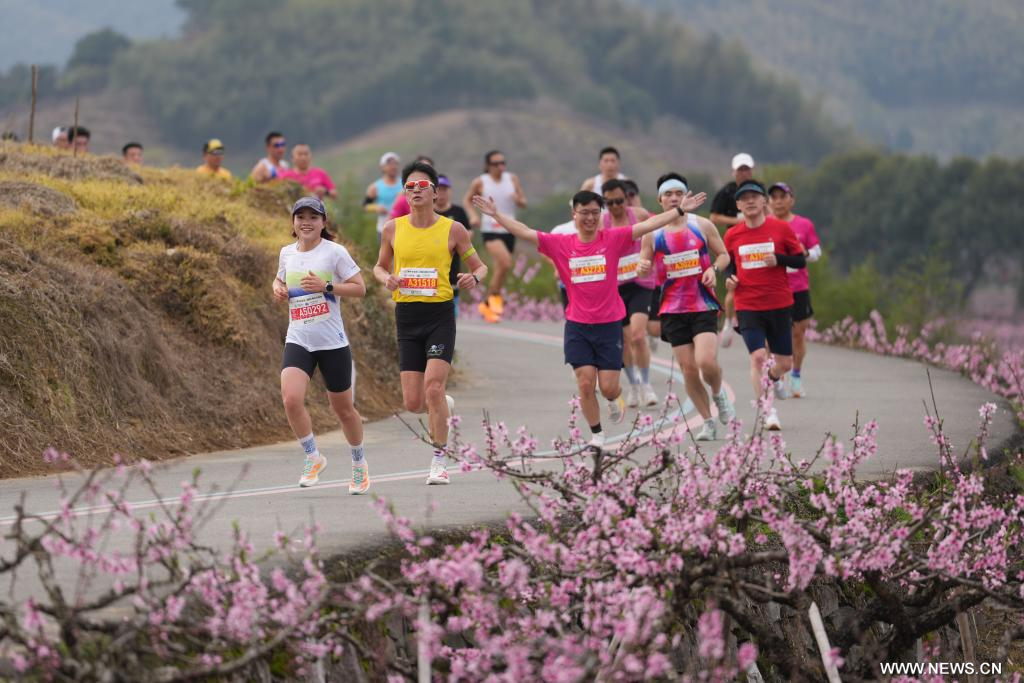 نينغبوه 22 مارس 2026 (شينخوا) في الصورة الملتقطة يوم 22 مارس 2026، جانب من ماراثون فنغهوا 2026 في حي فنغهوا بمدينة نينغبوه في مقاطعة تشجيانغ شرقي الصين. واجتذبت الفعالية حوالي 13 ألف شخص للمشاركة فيها.