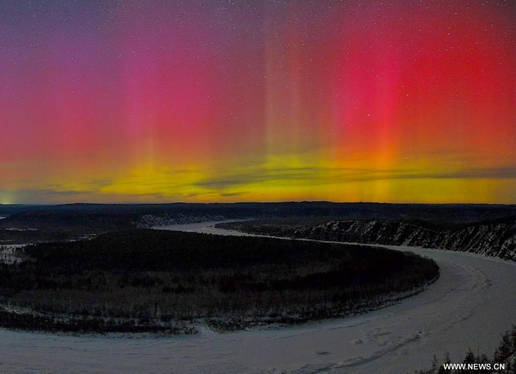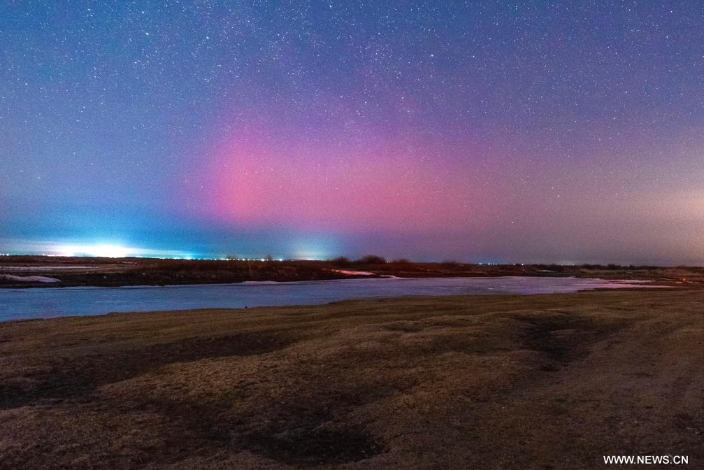 هاربين 24 مارس 2026 (شينخوا) في الصورة الملتقطة يوم 22 مارس 2026، شفق قطبي مرصود من مدينة فوجين في مقاطعة هيلونغجيانغ في شمال شرقي الصين. وبسبب تأثير الأنشطة المغناطيسية الأرضية، شهدت العديد من الأماكن في المقاطعة المذكورة شفقا قطبيا رائعا من مساء 22 مارس الجاري إلى صباح 23 مارس الجاري.