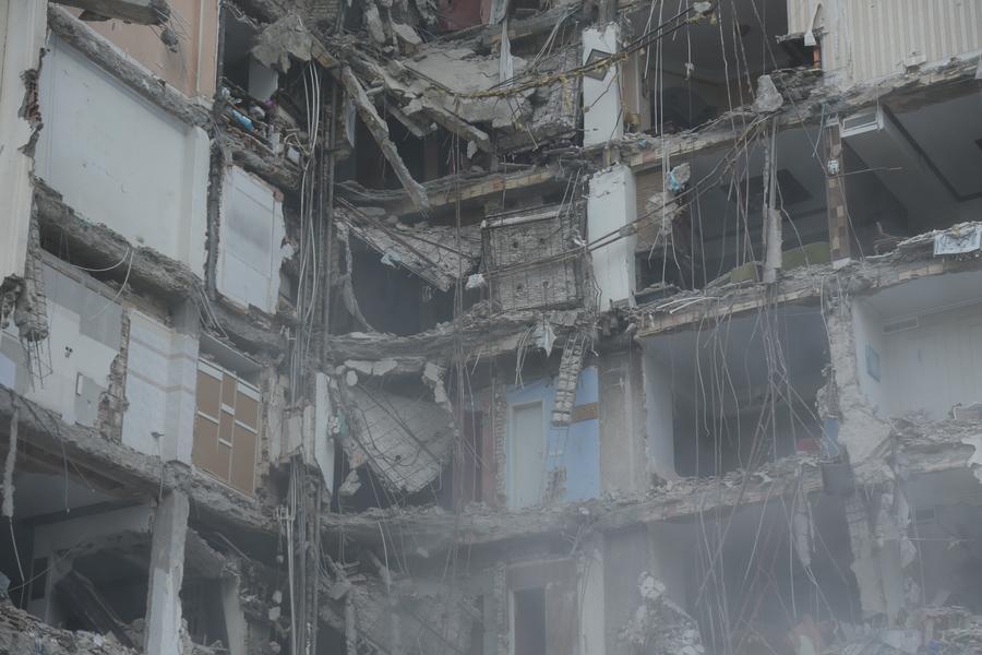 الصورة الملتقطة في 23 مارس 2026 تظهر مبنى مدمرا في منطقة سكنية بالعاصمة الإيرانية طهران في أعقاب الضربات الأمريكية الإسرائيلية المشتركة على إيران. (شينخوا)