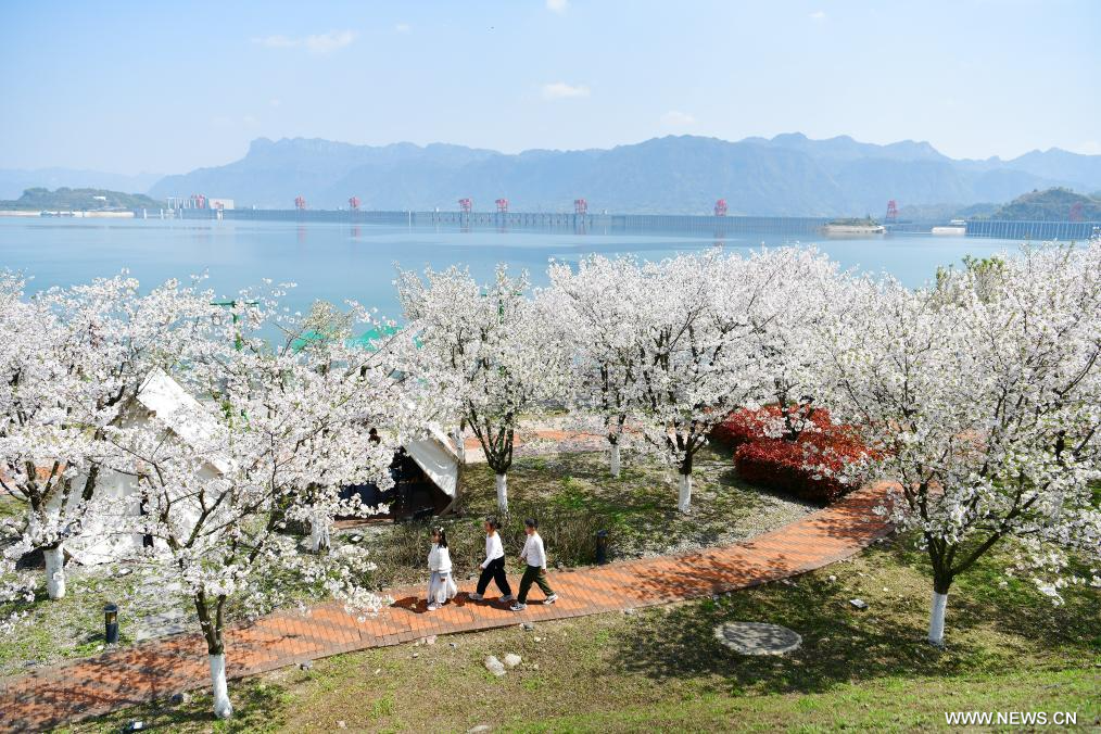 بكين 29 مارس 2026 (شينخوا) في الصورة الملتقطة يوم 28 مارس 2026، أناس يزورون الموقع الثقافي والسياحي لمسقط رأس تشيوي يوان، الشاعر الوطني للصين القديمة، في محافظة تسيقوي بمدينة ييتشانغ في مقاطعة هوبي بوسط الصين.