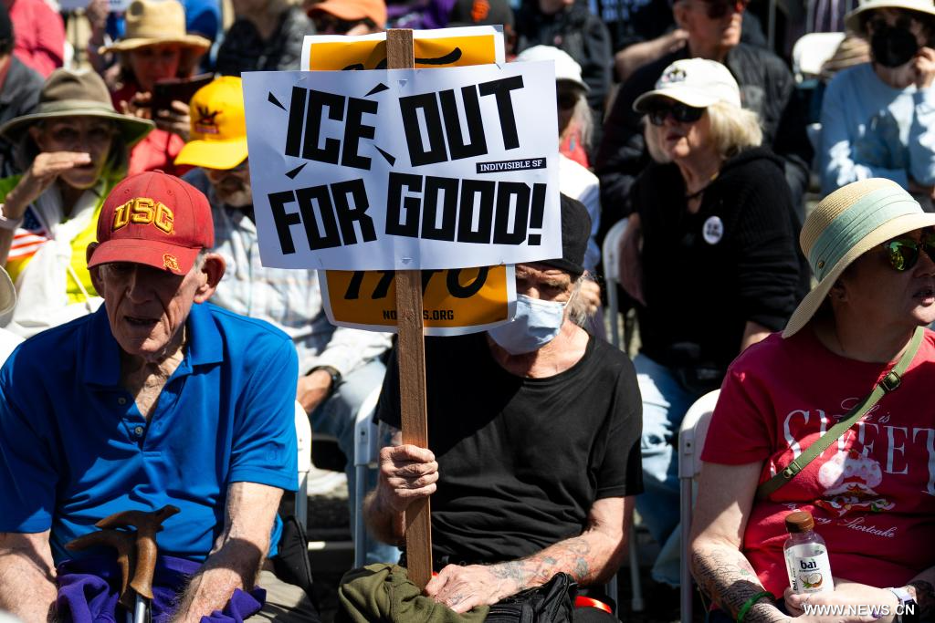 سان فرانسيسكو 29 مارس 2026 (شينخوا) في الصورة الملتقطة يوم 28 مارس 2026، أشخاص يشاركون في احتجاجات "لا للملوك" في مدينة سان فرانسيسكو بولاية كاليفورنيا في الولايات المتحدة.