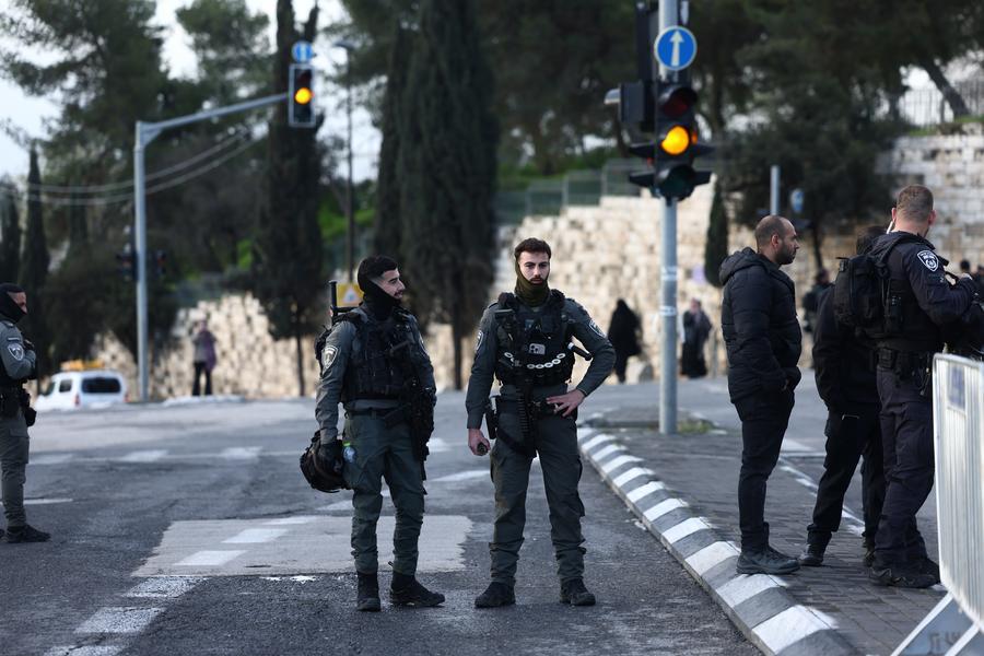 صورة تظهر عناصر من الشرطة الإسرائيلية أثناء حضور فلسطينيين لفعالية أقيمت بمناسبة عيد الفطر خارج البلدة القديمة في القدس في 20 مارس 2026. (شينخوا)
