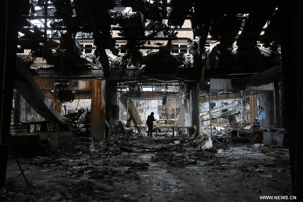 بكين 30 مارس 2026 (شينخوا) في الصورة الملتقطة 12 مارس 2026، رجل يحمل أدوات منزلية من مبنى متضرر في العاصمة الإيرانية طهران.