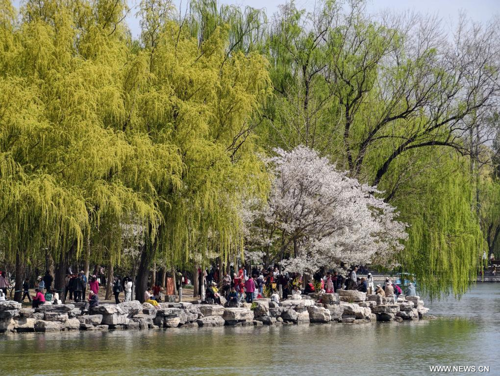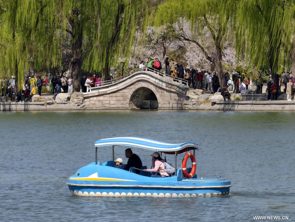 بكين 2 أبريل 2026 (شينخوا) في الصورة الملتقطة يوم أول أبريل 2026، سياح يزورون حديقة يوييوانتان في العاصمة الصينية بكين. وتتفتح زهور الربيع في شتى أنحاء البلاد، مما يجذب الناس للاستمتاع بالنزهات ومشاهدة الزهور.