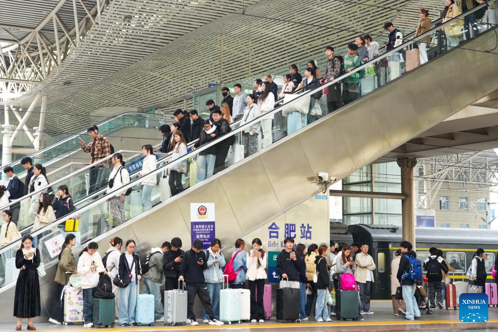 في الصورة الملتقطة يوم 3 أبريل 2026، جانب من محطة خفي للسكك الحديدية في مدينة خفي بمقاطعة آنهوي بشرقي الصين.
