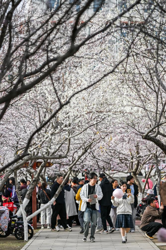 هوهيهوت 5 أبريل 2026 (شينخوا) في الصورة الملتقطة يوم 4 أبريل 2026، سياح يستمتعون بمشاهدة أزهار الخوخ في حديقة بمدينة هوهيهوت بمنطقة منغوليا الداخلية ذاتية الحكم في شمالي الصين.