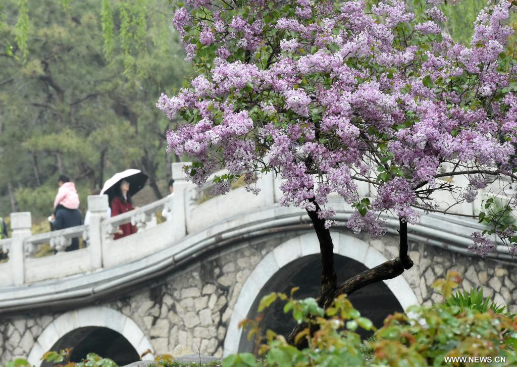 بكين 11 أبريل 2026 (شينخوا) في الصورة الملتقطة يوم 9 أبريل 2026، سياح يزورون حديقة يوانمينغيوان في العاصمة الصينية بكين.