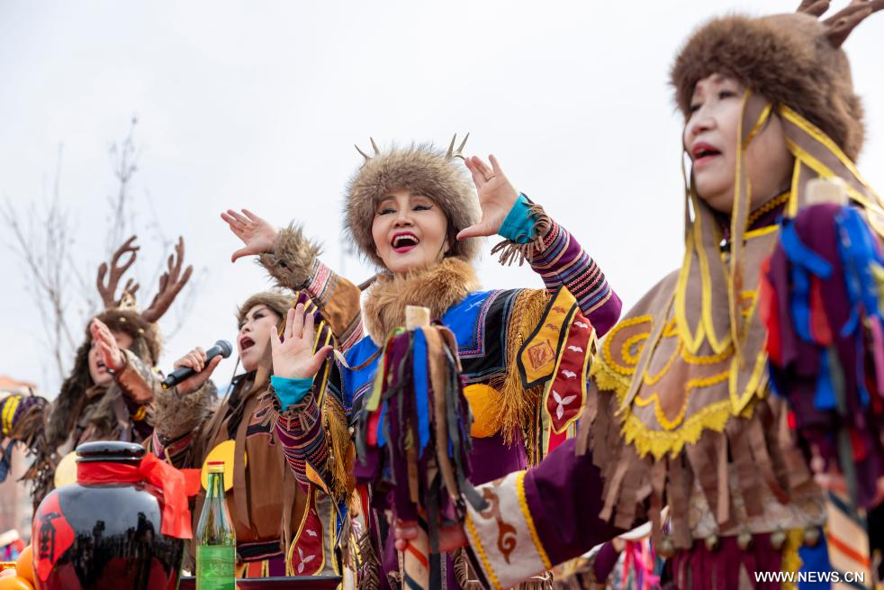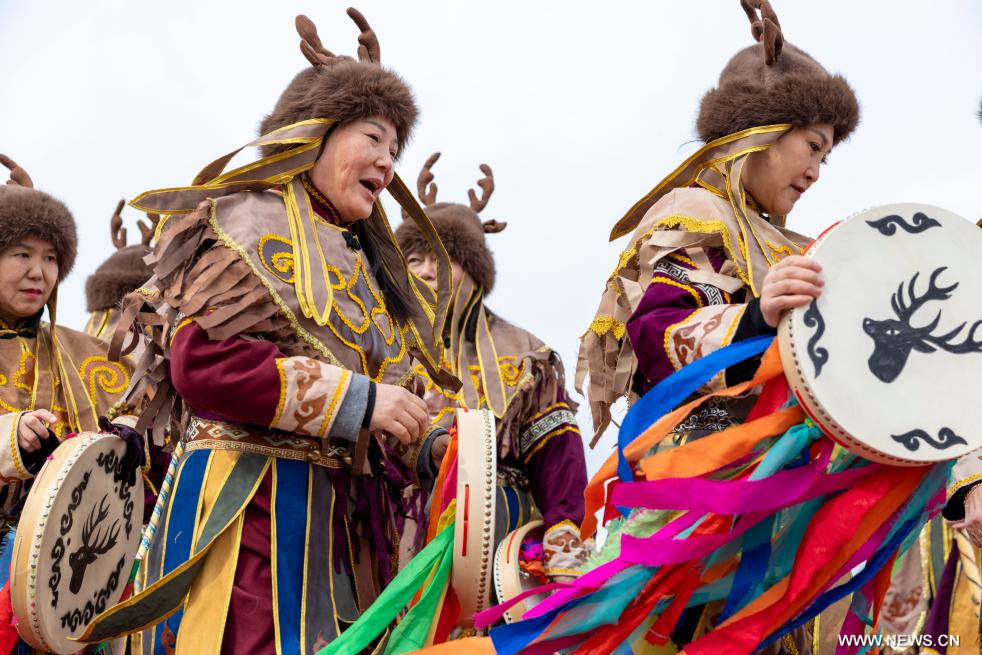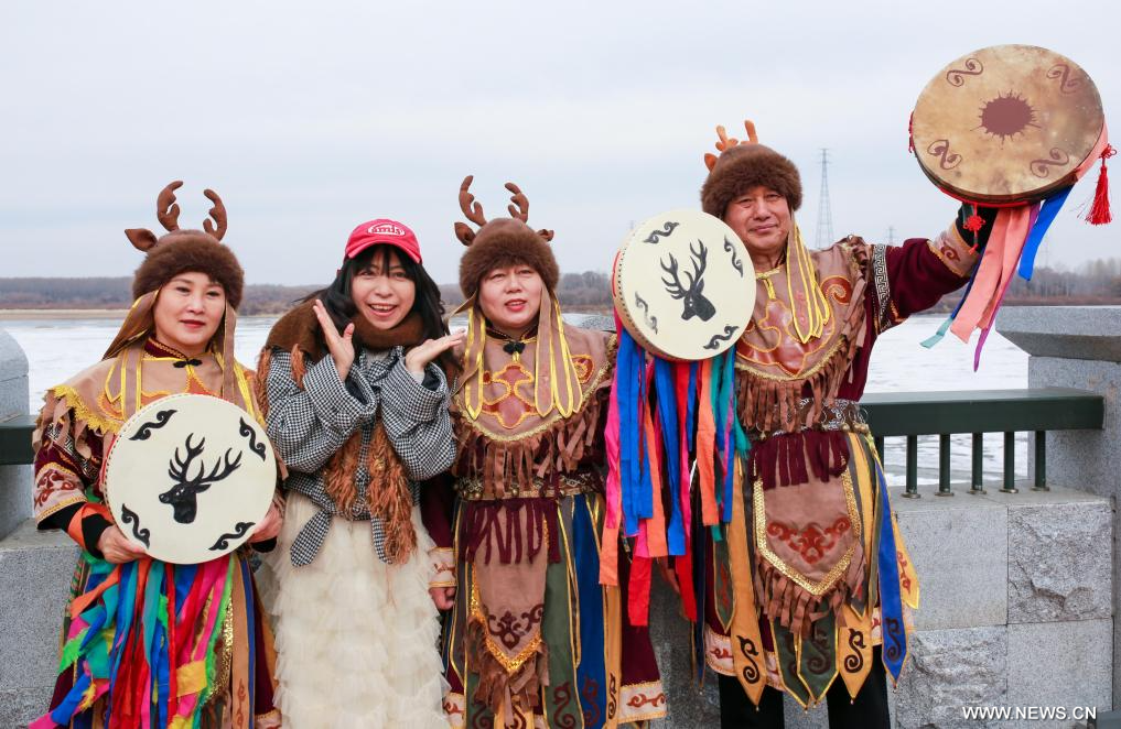 جياموسي 11 أبريل 2026 (شينخوا) في الصورة الملتقطة يوم 10 أبريل 2026، مؤدون من قومية خهتشه يقدمون عروضا خلال مهرجان هانجيانغ الذي أقيم في مدينة جياموسي بمقاطعة هيلونغجيانغ في شمال شرقي الصين.