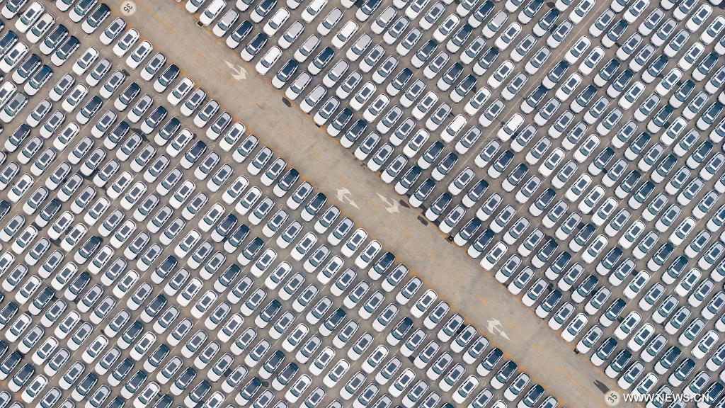 بكين 12 أبريل 2026 (شينخوا) في الصورة الملتقطة يوم 10 أبريل 2026، جانب من سيارات سيتم تصديرها في رصيف دحرجة بميناء تيانجين بشمالي الصين.