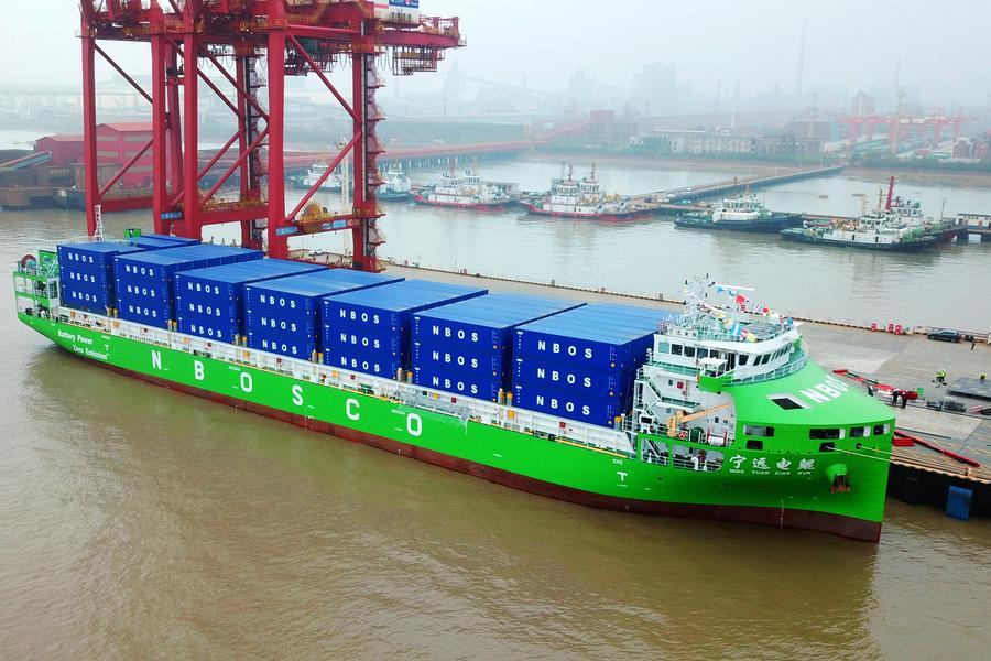 (وسائط متعددة) أكبر سفينة حاويات ذكية كهربائية بالكامل في العالم تدخل الخدمة في الصين