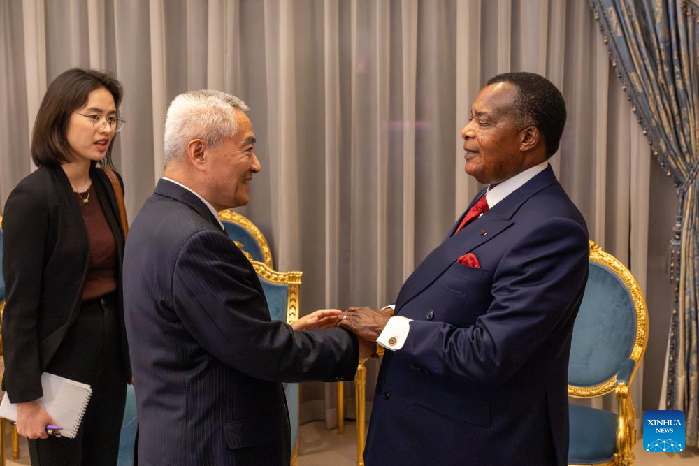 في يوم الجمعة، التقى ساسو نجيسو بشاو، وهو أيضا نائب رئيس المجلس الوطني للمؤتمر الاستشاري السياسي للشعب الصيني، في القصر الرئاسي في برازافيل.