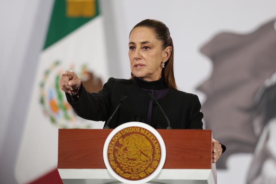 الرئيسة المكسيكية كلوديا شينباوم تتحدث في مؤتمر صحفي في مكسيكو سيتي بالمكسيك في 23 فبراير 2026. (شينخوا)